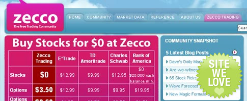 Zecco is a free alternative to trading stocks. You don’t pay any comission for irregular trades and day traders can do up to 40 trades a month at no cost. The design of the site itself is a nice change from the traditional financial approach. If you’re already a trader or are looking to get your feet wet, you’ll love Zecco as much as we do.