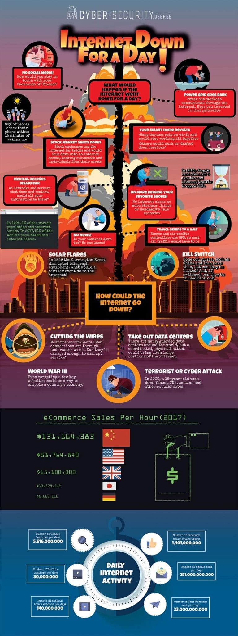 When cybersecurity works well, it is invisible. It allows us to secure our online operations, be that through mobile banking, accessing our email, or having access to the internet at all, and does so without the need for thanks. Engineers and cybersecurity experts work around the clock to defend vital systems from international attacks, hacking attempts, and intellectual property theft. But sometimes, even more pressing issues can take place. For instance, what would you presume could happen if the internet went down for a day? It’s hard to ask this question, but the following answers should yield some insight.