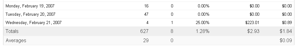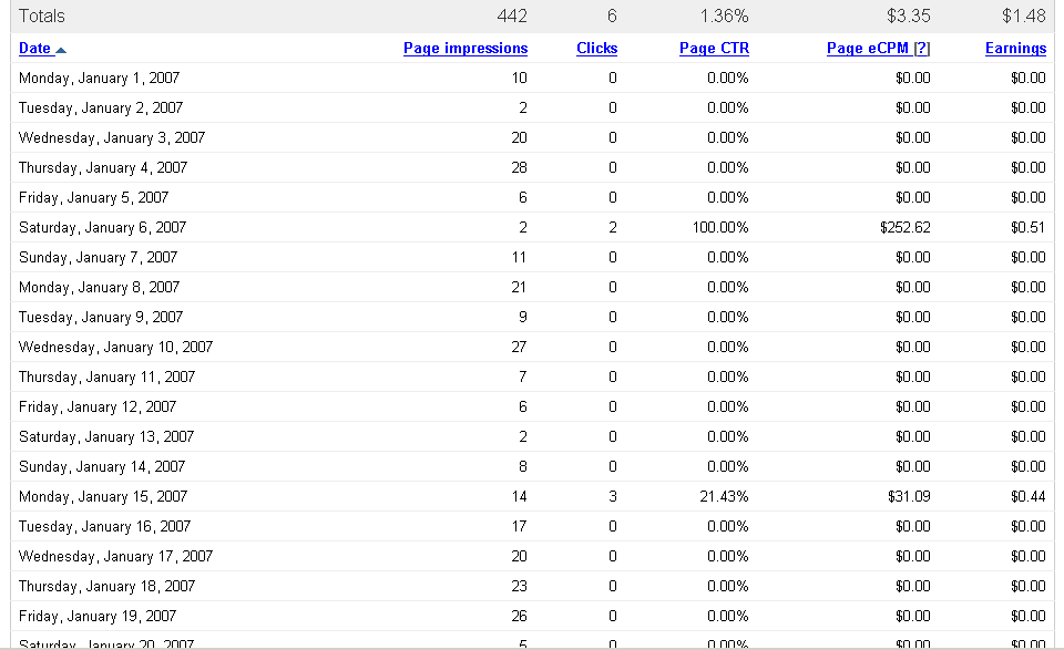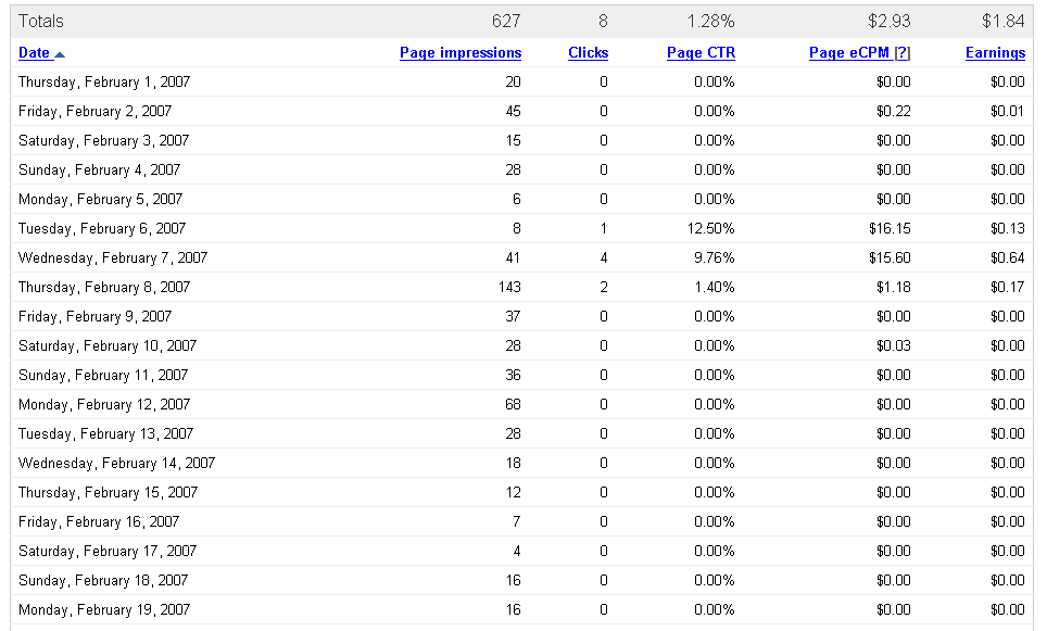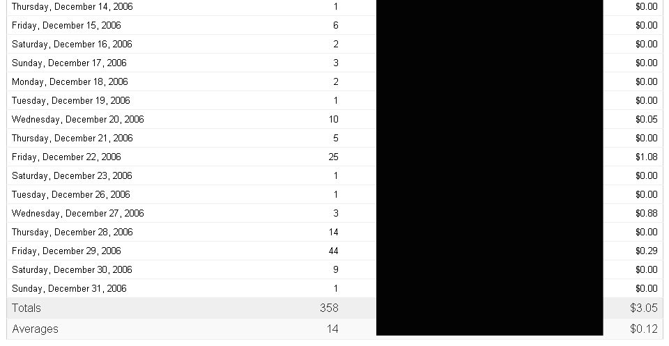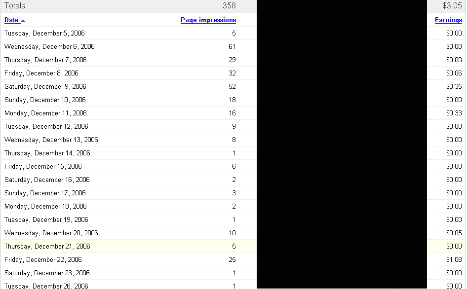 Adsense image will be up tonight. Since 12/5, this is what adsense has reported: 1,376 impressions, $5.48 revenue, avg $0.07.