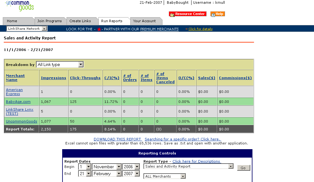 You had a really high click-through rate with Linkshare. I'm surprised none of them converted.