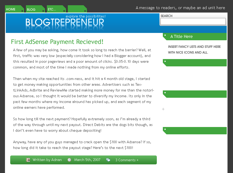 Things are going smoothly on the design - I've got a new catchphrase..."Blogtrepreneurship redefined". You like?