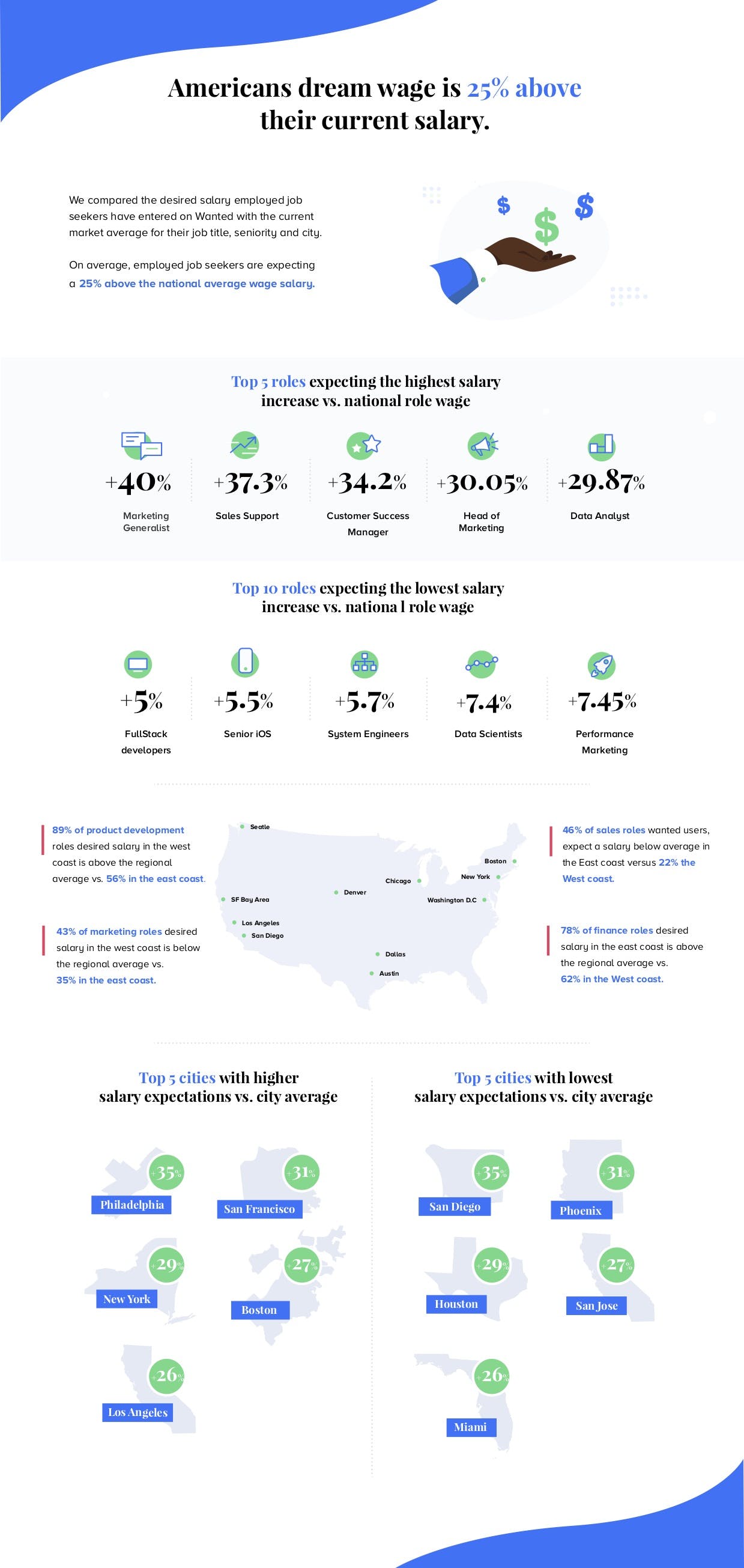 Whatever your goals are or how you get there, your salary expectations may be at least 25 percent more than what you currently make, studies show. Comparing the desired salaries with the current market average for specific job titles, seniority and city, this study has shown that.