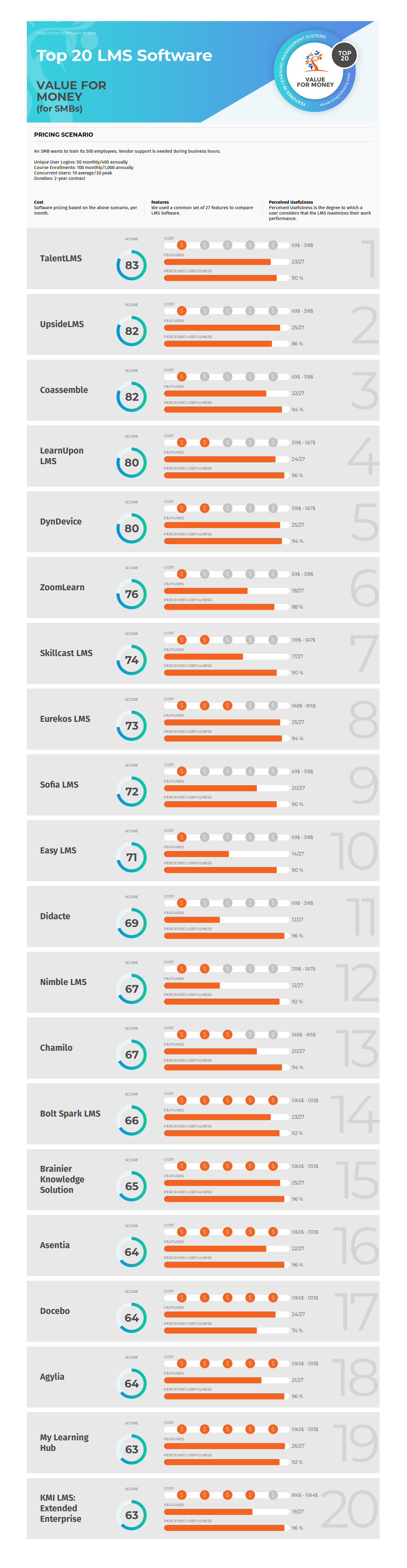 Infographic by eLearning Industry Best 20 Value for Money LMS Software for Small Businesses
